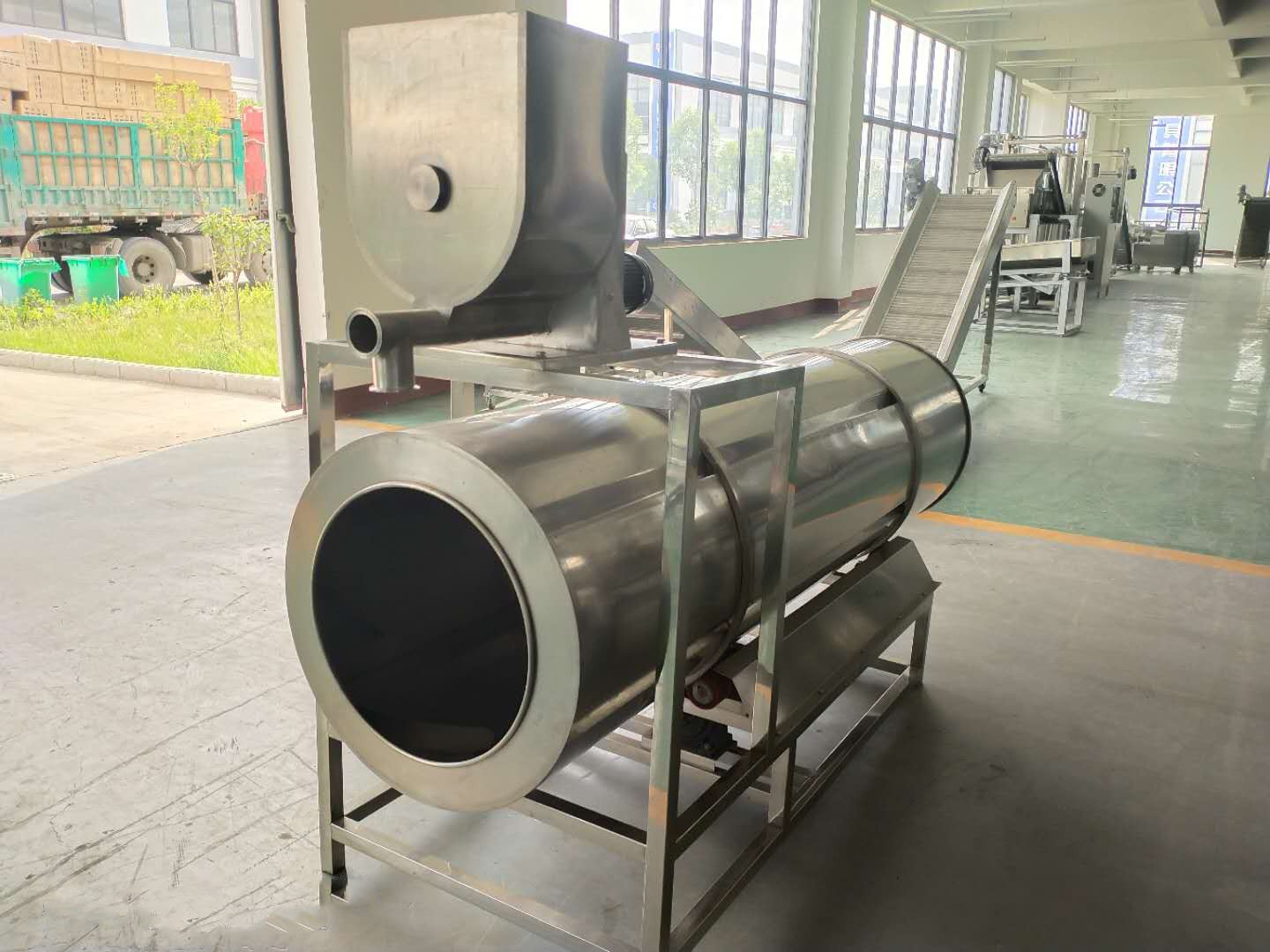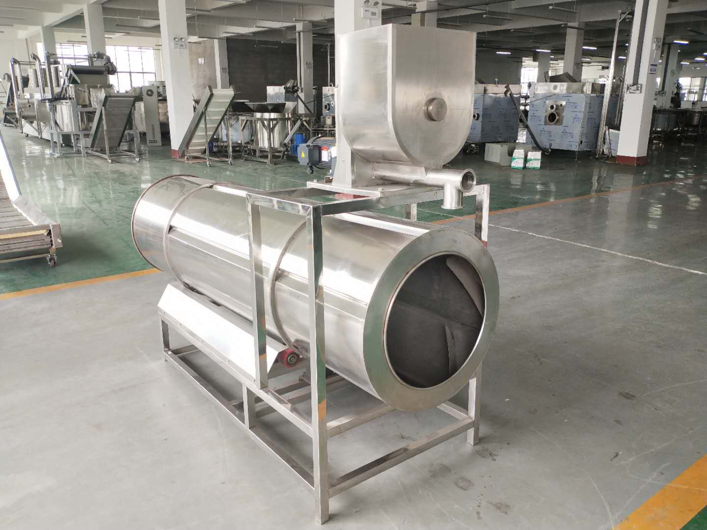 該設備具有傾角式調(diào)味滾筒,全自動控制轉(zhuǎn)速和物料的容量,適用于流水線連續(xù)性調(diào)味作業(yè).配備螺旋送粉裝置,并在撒粉同時自主攪拌,使調(diào)味料不會因比重不同或反鹵,而形成的沉積,粘連,篷空.撒粉均勻,定量準確.
